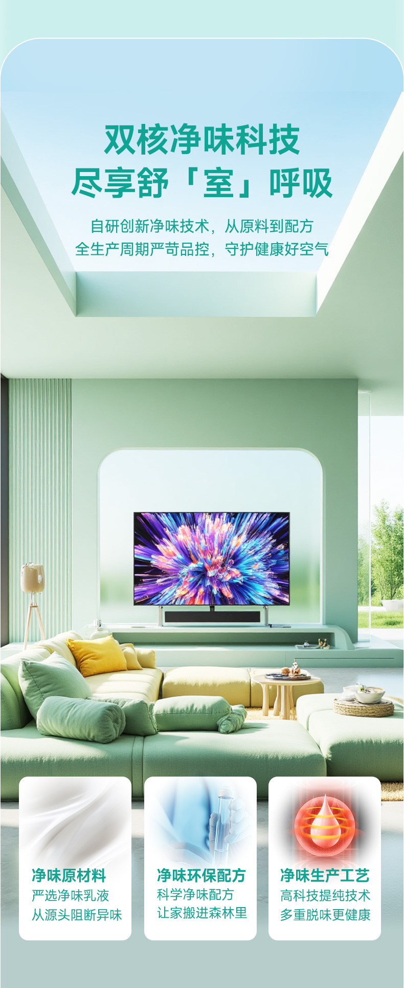 竹炭双核净味高遮盖墙面漆产品,精选优质净味乳液,采用高科技双核净味技术,净味环保功能加倍;产品制作工艺精良,漆膜洁净亮白,手感更加爽滑。施工方便快捷,遮盖力高,涂刷面积更大。更省料,轻松为您打造舒适的居家生活。